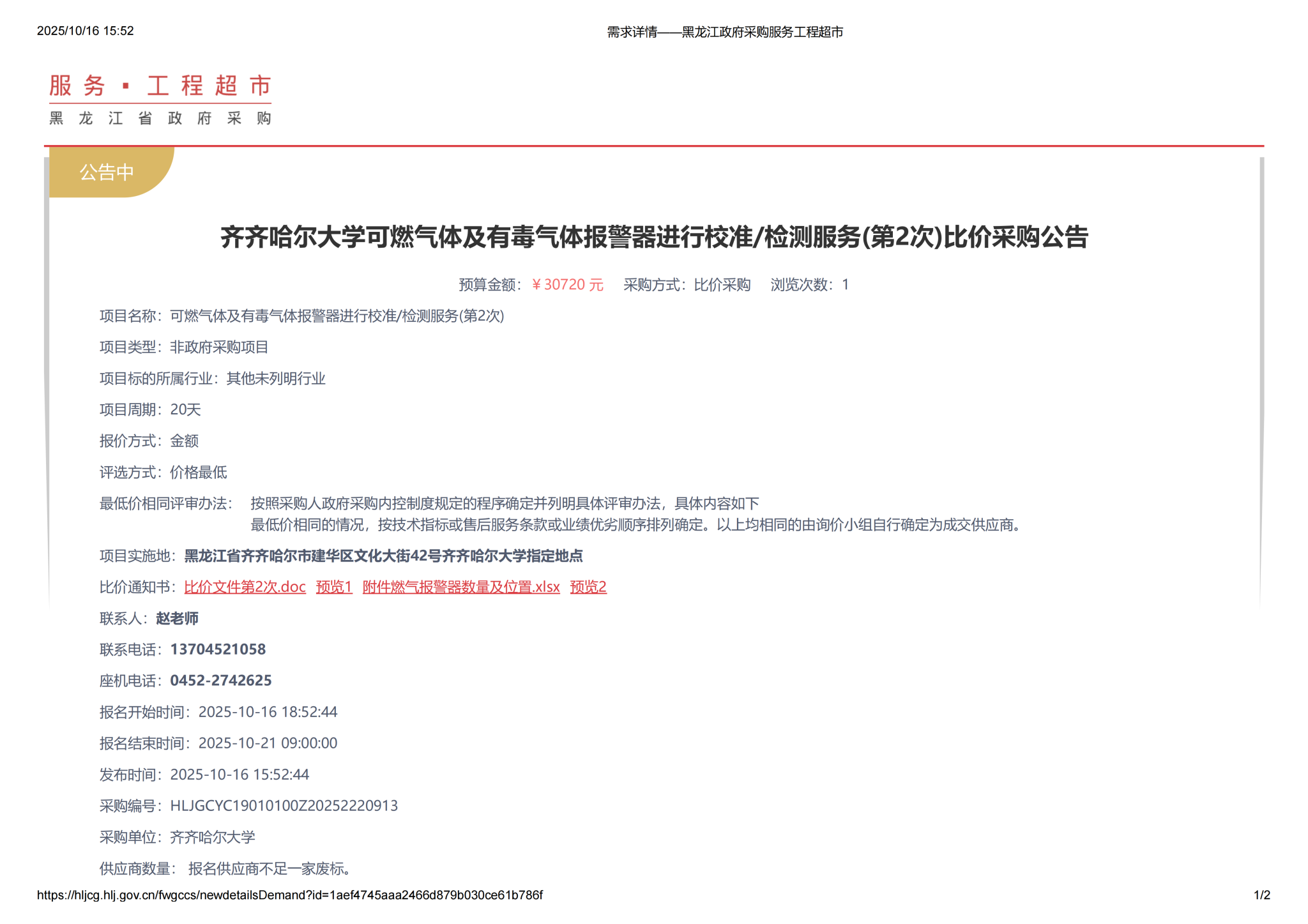 下一條:齊齊哈爾大學(xué)可燃?xì)怏w及有毒氣體報警器進(jìn)行校準(zhǔn)檢測服務(wù)終止公告(轉(zhuǎn)自黑龍江省政府采購網(wǎng))