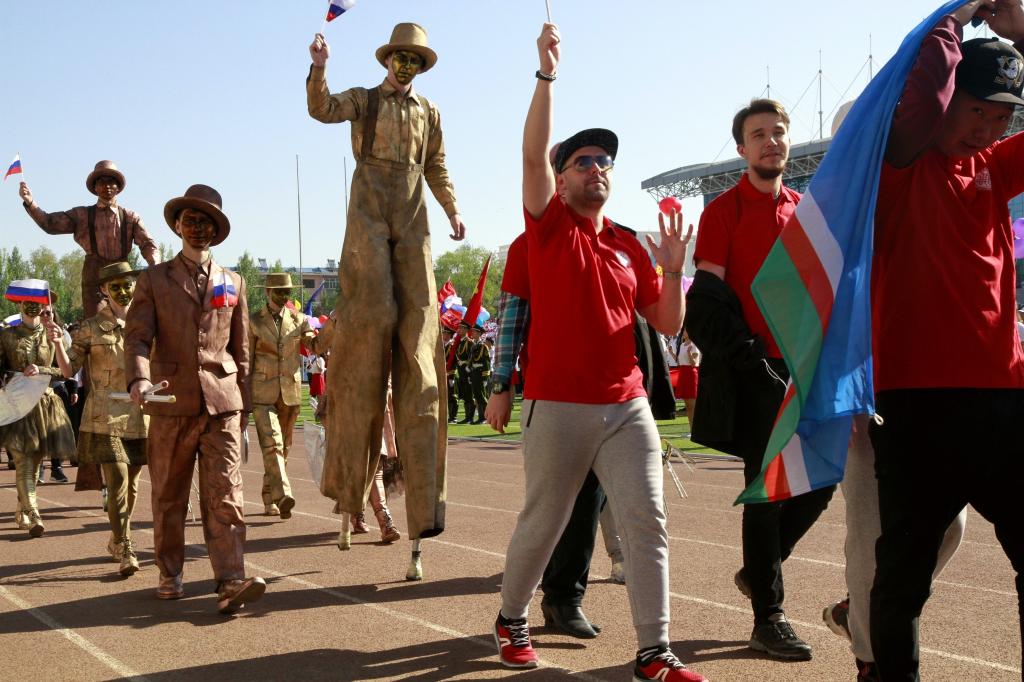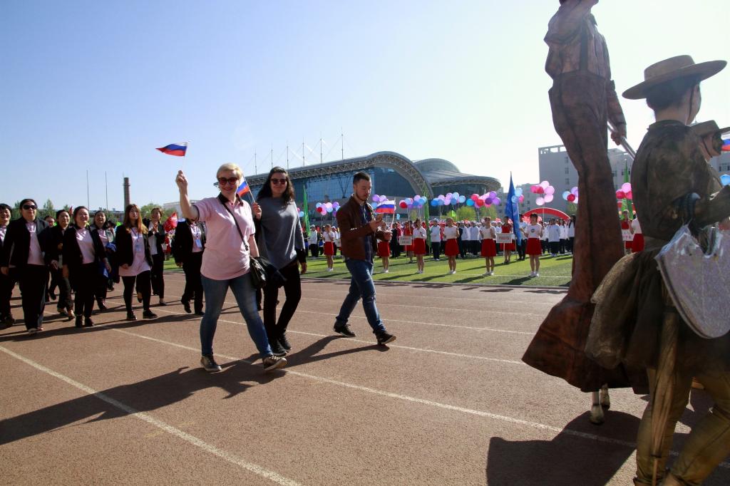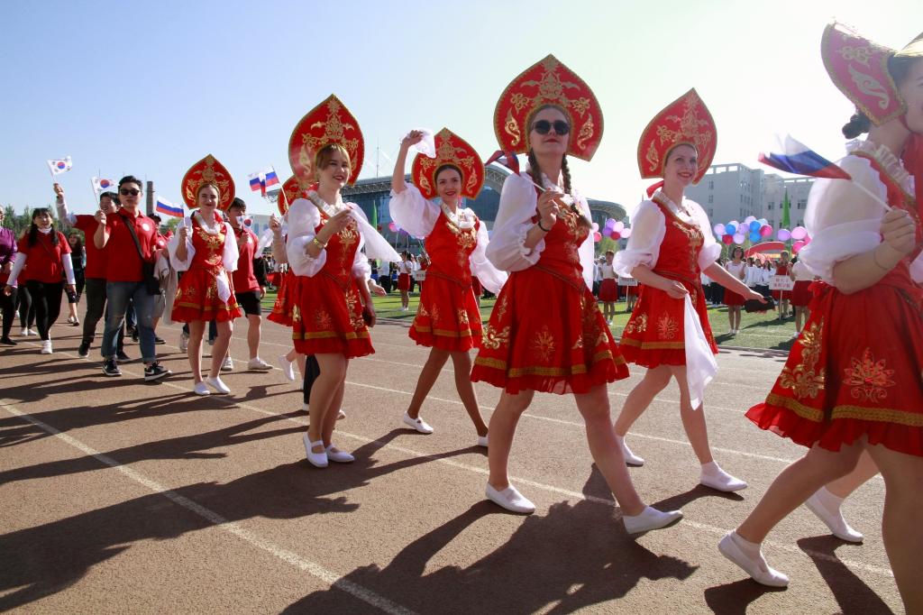 來訪師生穿著富有俄羅斯民族特色的服裝跟隨國際教育學(xué)院方隊,接受了大會檢閱。