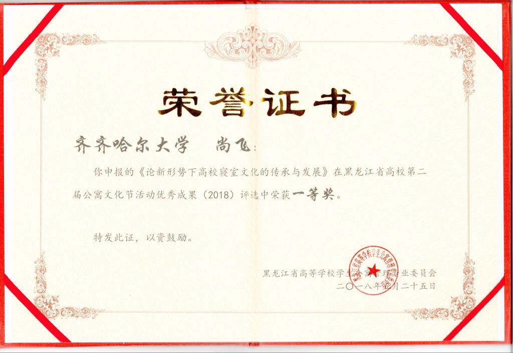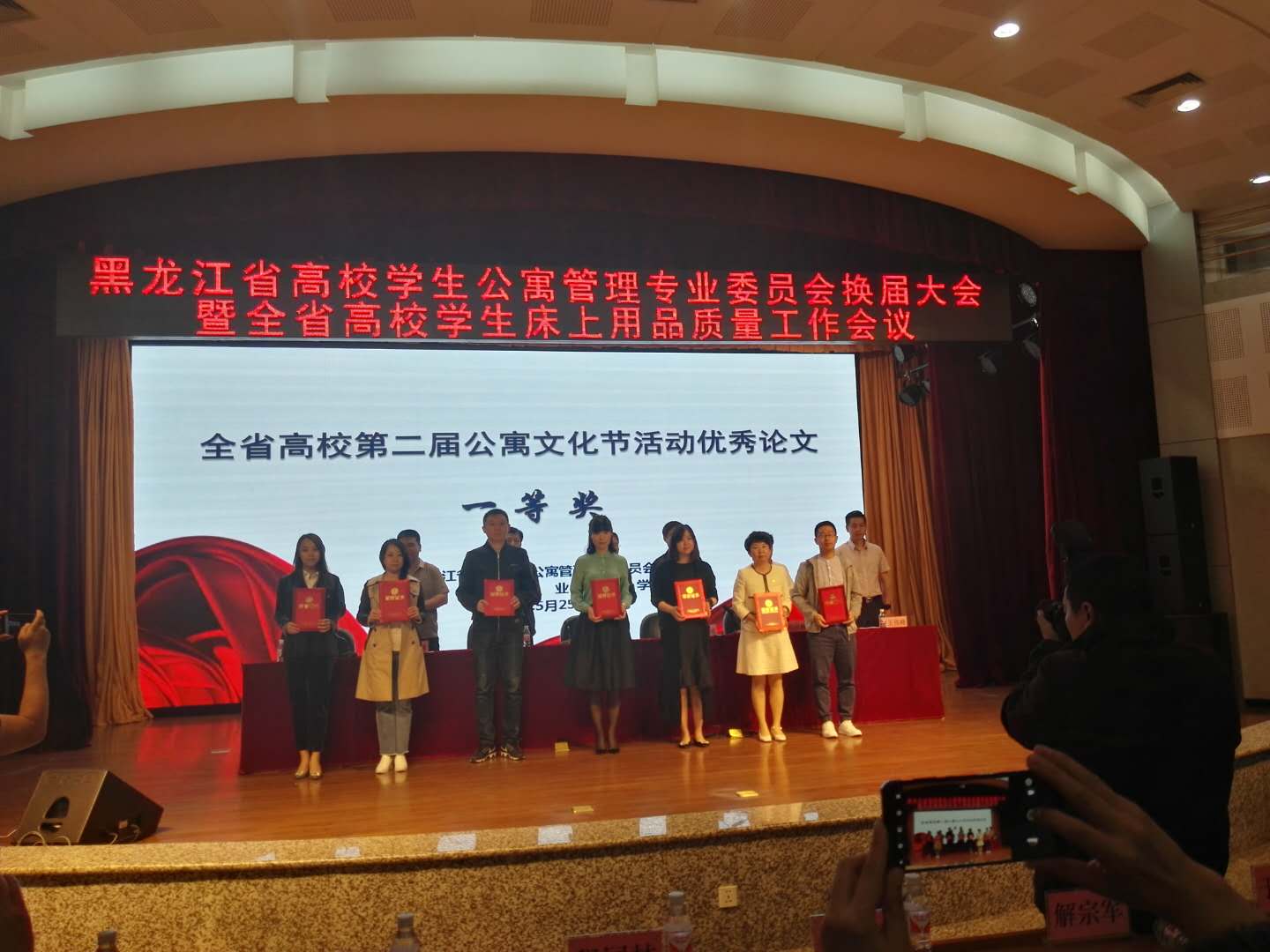 本次會(huì)議總結(jié)了第五屆省寓專(zhuān)會(huì)工作、安排部署了第六屆省寓專(zhuān)會(huì)工作,通報(bào)了2017年全省高校床上用品工作情況和安排部署2018年相關(guān)工作。大會(huì)同時(shí)表彰了全省高校第二屆公寓文化節(jié)活動(dòng)優(yōu)秀成果。本屆公寓文化節(jié)活動(dòng)優(yōu)秀成果評(píng)比從2017年10月開(kāi)始征集材料,我校以第四屆“學(xué)生寢室節(jié)”為依托,組織開(kāi)展了形式多樣、特色鮮明的公寓文化活動(dòng),引領(lǐng)大學(xué)生養(yǎng)成良好的生活習(xí)慣,樹(shù)立正確的人生觀(guān)和價(jià)值觀(guān),充分發(fā)揮了學(xué)生公寓的育人功能。最終,我校選送的公寓文化節(jié)系列活動(dòng)匯編喜獲“黑龍江省高校第二屆公寓文化節(jié)活動(dòng)”優(yōu)秀成果一等獎(jiǎng),尚飛老師申報(bào)的論文《論新形勢(shì)下高校寢室文化的傳承與發(fā)展》喜獲“黑龍江省高校第二屆公寓文化節(jié)活動(dòng)”優(yōu)秀論文一等獎(jiǎng)。這是繼2017年我校榮獲全國(guó)高校學(xué)生公寓工作創(chuàng)新成果三等獎(jiǎng)后的又一佳績(jī)。