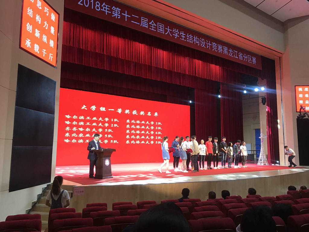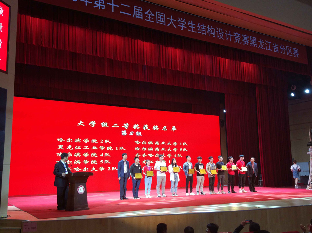 5月25-27日,土木工程領域頂級賽事“龍江建工”杯第十二屆全國大學生結構設計競賽黑龍江分區(qū)賽在哈爾濱學院隆重舉行。來自哈爾濱工業(yè)大學、哈爾濱工程大學等省內24所高校及省內7所重點高中的114支代表隊,400余位師生參加了本次賽事。我校派出由建筑與土木工程學院土木工程專業(yè)教師王麗、呂春、張宇指導,15名學生組成的5支隊伍參賽。建筑與土木工程學院教學副院長張道明來到比賽現場指導,鼓舞學生士氣。最終,我校獲得一等獎1項,二等獎2項,團體二等獎1項。