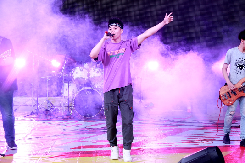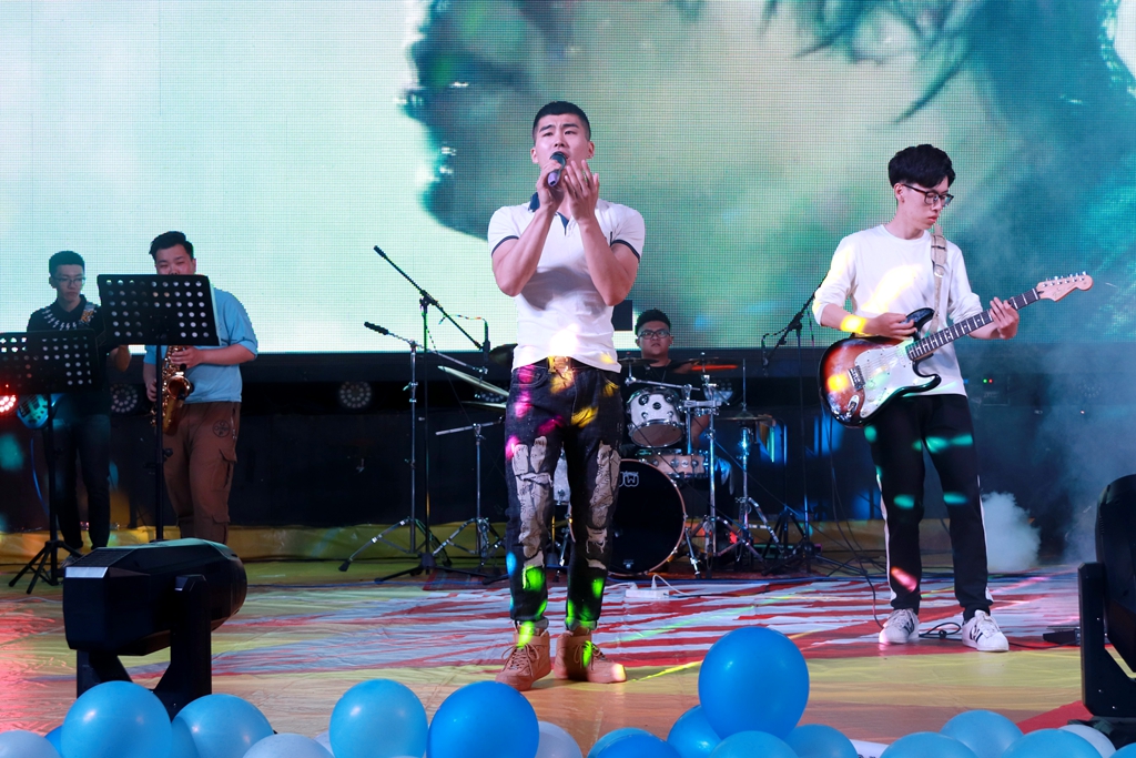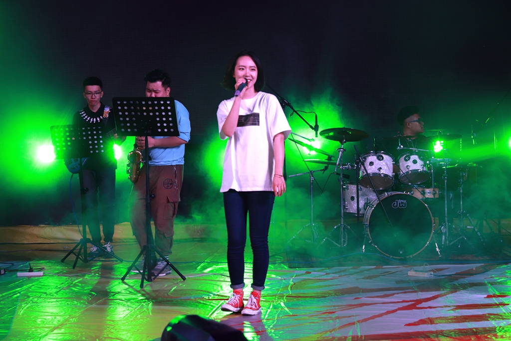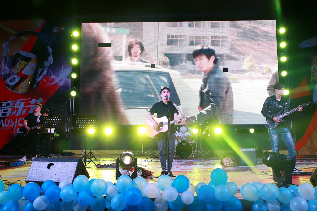 “一枝玫瑰”樂隊(duì)以一段小小的獨(dú)奏,驅(qū)趕黑夜,燃燒熱情,主唱的一聲吶喊開啟了今天他們的part。愛就像藍(lán)天白云,晴空萬里,突然暴風(fēng)雨。一枝玫瑰樂隊(duì)的《答案》俏皮可愛,隊(duì)員們也在臺(tái)上開始即興互動(dòng),氣氛溫馨。響指與節(jié)奏或許更配哦,《嘿姑娘》中有一段小互動(dòng),主唱的響指搞怪又創(chuàng)新。《走馬》遇上“一枝玫瑰“依舊是深情滿滿,邊彈邊唱的他們仿佛沉醉在音樂中,眼神深邃,燈光溫柔,一切都變得十分渾然天成?!锻蝗缓孟肽恪芬苍S是在場(chǎng)很多同學(xué)年輕的記憶,或者是大家心底都有一個(gè)能突然想起的人,全場(chǎng)同唱這首歌的情景,也許是這個(gè)夜晚最難忘的時(shí)刻。沉浸在閃光燈海里的《平凡之路》唱著一枝玫瑰樂隊(duì)不平凡的今晚。一連10首的演唱,為今晚的音樂節(jié)畫上完美的句號(hào)。