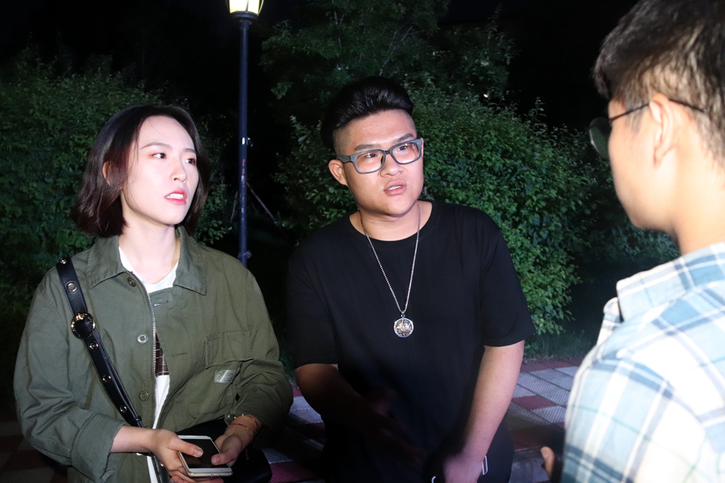 演出結(jié)束后,大學(xué)生記者團(tuán)的學(xué)生記者有幸采訪到樂隊(duì)隊(duì)員:顧天宇、邱笑顏、牛敬明、王禹欣、王亮、李金浩,他們說:“今天挑選的歌大家都喜歡,都很符合大家的口味——搖滾+金屬,并且今天5首歌的表現(xiàn)我們都很滿意。平時(shí)樂隊(duì)在排練的時(shí)候氣氛就非?;钴S,也導(dǎo)致今天我們?cè)谂_(tái)上的表演十分跳躍。樂隊(duì)5年了,可以說是默契十足。同時(shí)今天很感動(dòng)的是,我們?cè)诒硌莸臅r(shí)候大家都十分熱情,這是我們表演最大的動(dòng)力。我們也會(huì)繼續(xù)努力,爭(zhēng)取把更好的表演送給大家。”