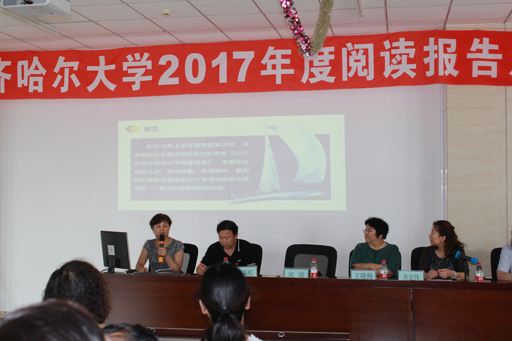 為了體現(xiàn)我校師生利用圖書(shū)館資源的情況,從不同的角度解讀了我校師生的閱讀傾向和閱讀習(xí)慣,宋波用詳實(shí)的數(shù)據(jù)講解了2017年度齊齊哈爾大學(xué)閱讀報(bào)告。報(bào)告中分別對(duì)紙質(zhì)資源和數(shù)據(jù)庫(kù)資源的使用情況進(jìn)行了解讀,充分分析了我校本科和研究生閱讀現(xiàn)狀。圖書(shū)館近兩年用數(shù)據(jù)的方式發(fā)布了全校的閱讀報(bào)告,這既是對(duì)圖書(shū)館一年工作的總結(jié),也是對(duì)我校讀書(shū)現(xiàn)狀的數(shù)據(jù)支持。