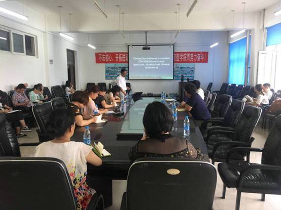 7月30日,美國農(nóng)業(yè)部農(nóng)業(yè)研究署(USDA-ARS)研究員,美國威斯康星大學(University of Wisconsin-Madison)園藝系翁益群博士應(yīng)邀來到我校生命科學與農(nóng)林學院作了題為《STAYGREEN,STAY HEALTHY-a loss-of-susceptibility mutation in the STAYGREEN gene provides durable, broad-spectrum disease resistance in cucumber》的學術(shù)報告。生命科學與農(nóng)林學院院長邵淑麗、副院長張東向、副院長高美玲出席報告會,學院30余名師生參加了報告會。報告會由院長邵淑麗主持。
