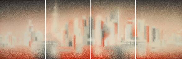 王舒野先生首先介紹了自己在日本用十年時間默修獨研東西方哲學的體會,以及逐步形成的獨特的觀察認知世間物象的方法,從而創(chuàng)造了“刻意打破分辨物體視覺慣性的無差別視覺方式”,并創(chuàng)立了“呈現(xiàn)無差別觀看的獨特繪畫表現(xiàn)形式”。他對此解釋道:“我提出‘無差別觀看’的藝術(shù)思想,是對近代以來人類文明發(fā)展歷程的一種反思和對人類當下整體問題意識的銜接,而并非僅僅是追求一種新奇的形式。面對現(xiàn)代性的問題,我們應該提出一些西方式的思維方式觸摸不到的維度和層面,提出具有東方藝術(shù)精神的當代藝術(shù)思想。正因為有這樣的主張,所以我就很自然地將思考銜接上了東方的古老智慧?!?/p>