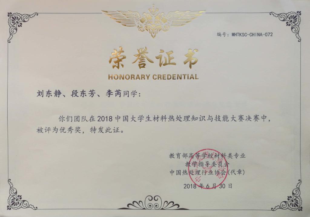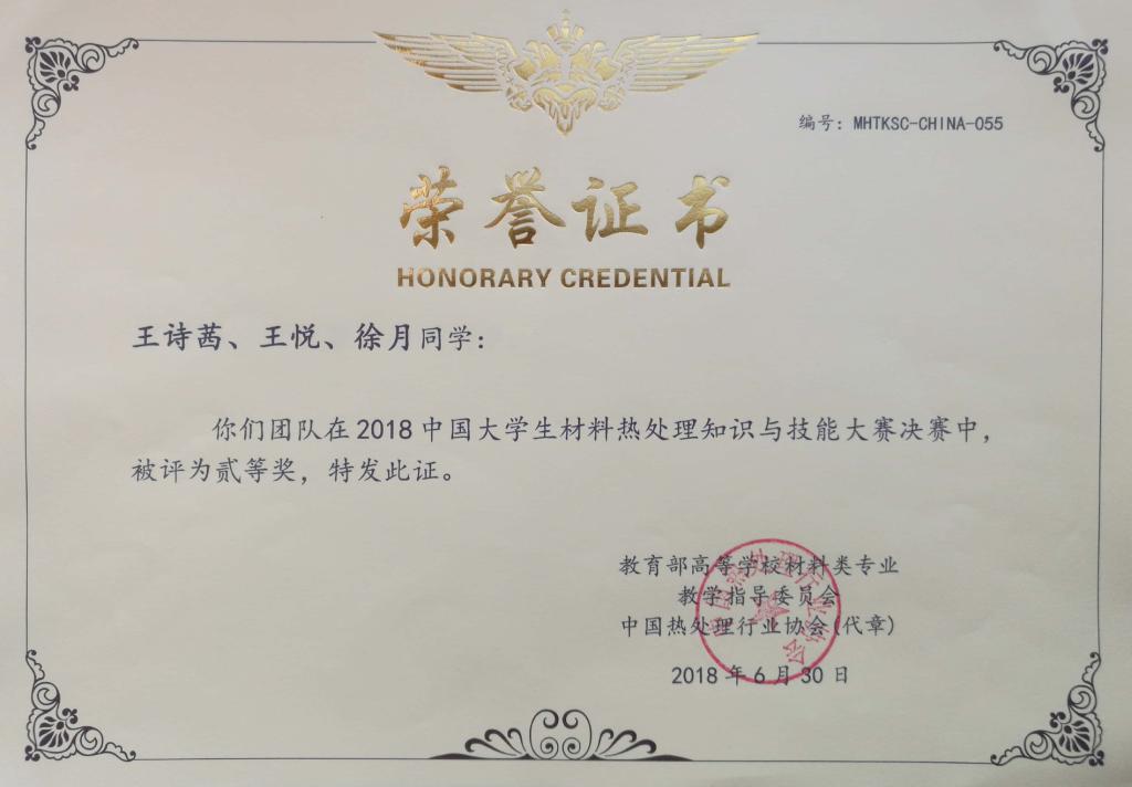 日前,2018中國(guó)大學(xué)生材料熱處理知識(shí)與技能大賽落下帷幕。本屆大賽由中國(guó)熱處理行業(yè)協(xié)會(huì)、教育部高等學(xué)校材料類專業(yè)教學(xué)指導(dǎo)委員會(huì)主辦,中國(guó)熱處理行業(yè)協(xié)會(huì)教育培訓(xùn)工作委員會(huì)、哈爾濱工業(yè)大學(xué)、河北工業(yè)大學(xué)、福州大學(xué)、西南交通大學(xué)共同承辦。我校材料科學(xué)與工程學(xué)院王詩(shī)茜、王悅、徐月、劉東靜、段東芳和李芮6名學(xué)生分成2隊(duì)參加比賽,分別榮獲二等獎(jiǎng)和優(yōu)秀獎(jiǎng),材料化學(xué)專業(yè)副教授由園博士被評(píng)為優(yōu)秀指導(dǎo)教師。