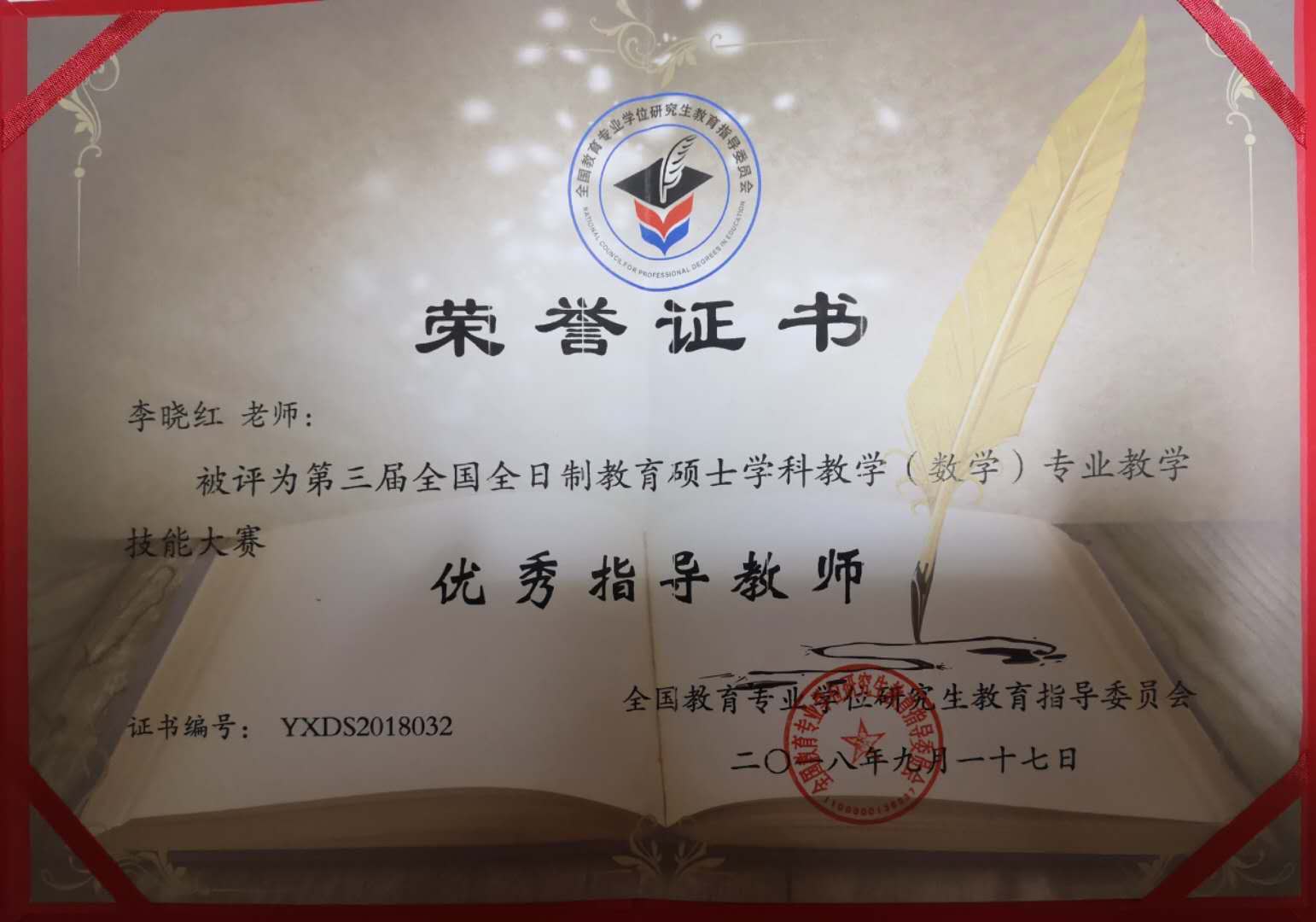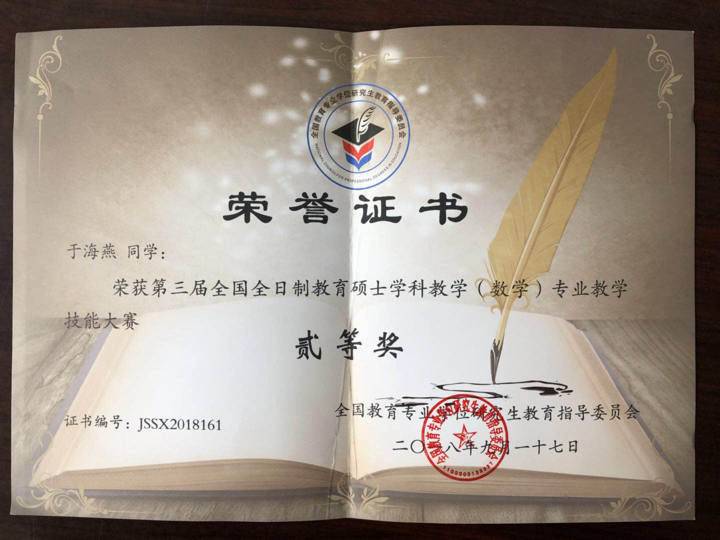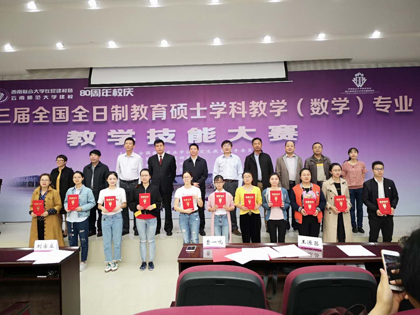 第三屆全國全日制教育碩士學(xué)科教學(xué)(數(shù)學(xué))專業(yè)教學(xué)技能大賽于2018年9月17日在云南師范大學(xué)落下帷幕,齊齊哈爾大學(xué)理學(xué)院學(xué)科教學(xué)(數(shù)學(xué))領(lǐng)域2017級研究生于海燕進入決賽,經(jīng)過激烈角逐,榮獲貳等獎,導(dǎo)師李曉紅教授榮獲優(yōu)秀指導(dǎo)教師稱號。