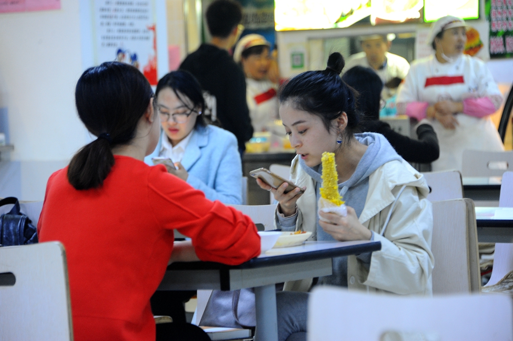 記者在中區(qū)八食堂遇到了兩位音樂與舞蹈學(xué)院的研究生師姐,她們也正在通過手機觀看新聞聯(lián)播,并向記者談到她們觀看新聞報道后的感受。