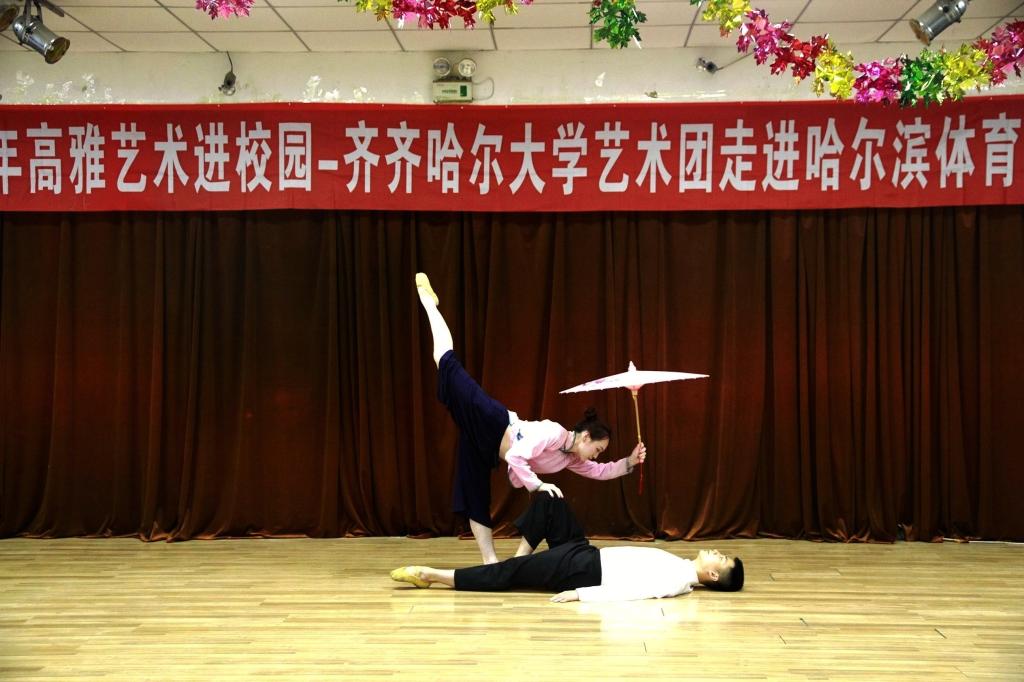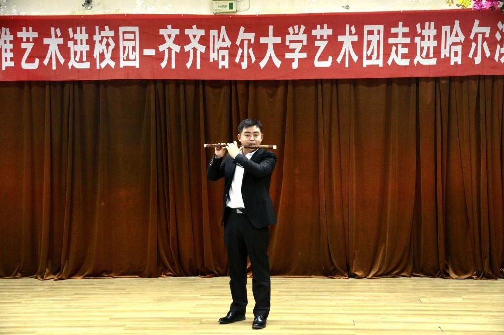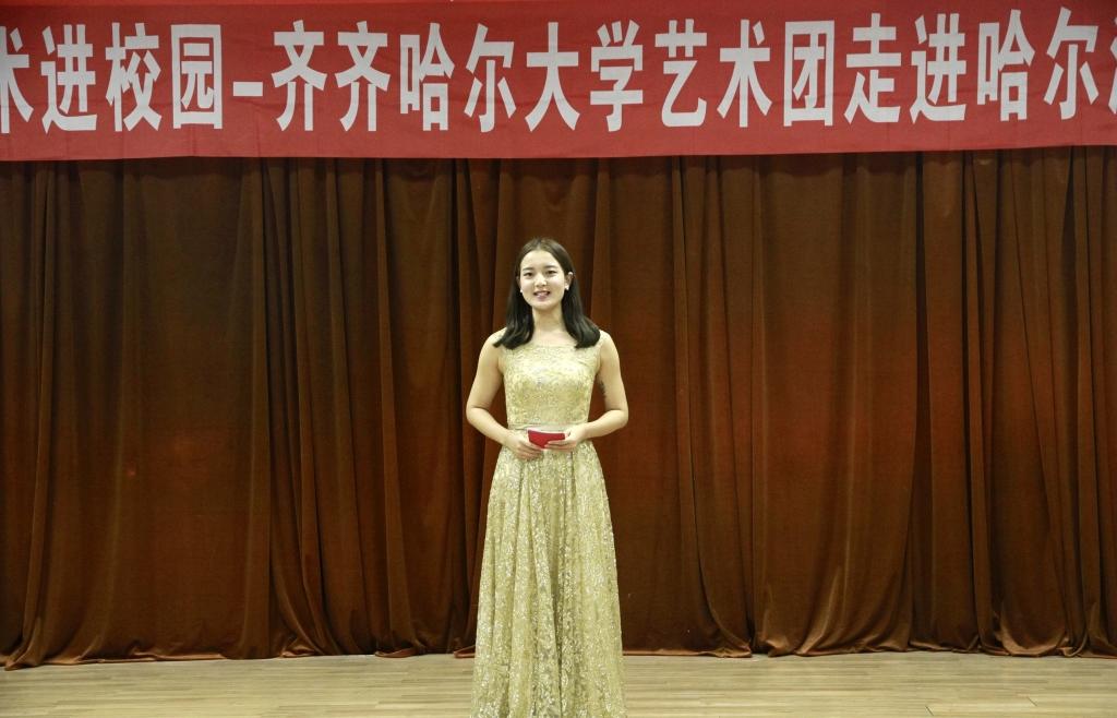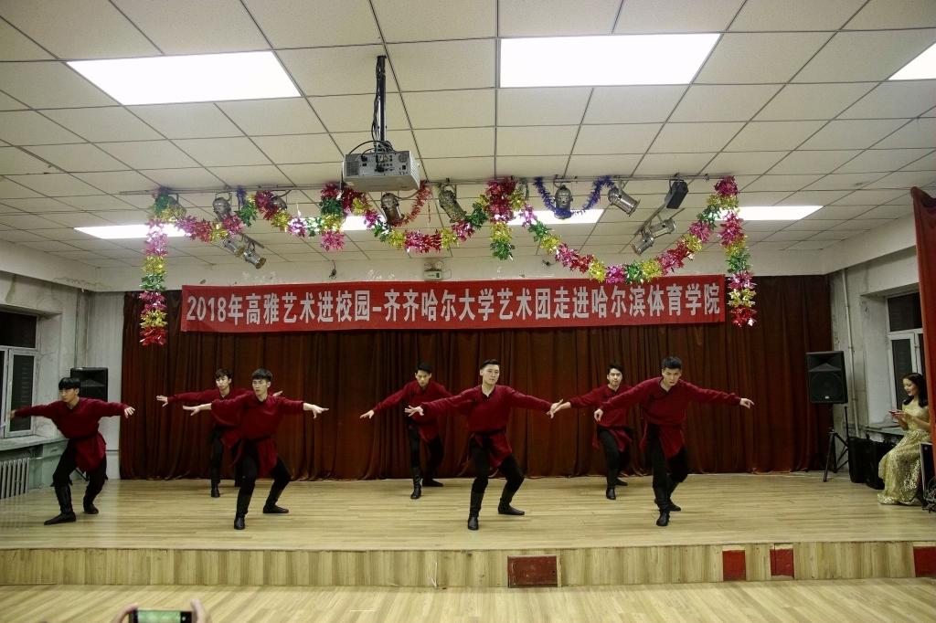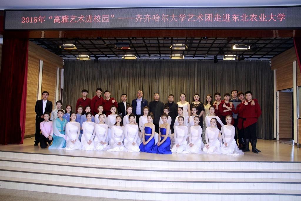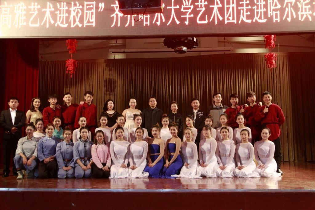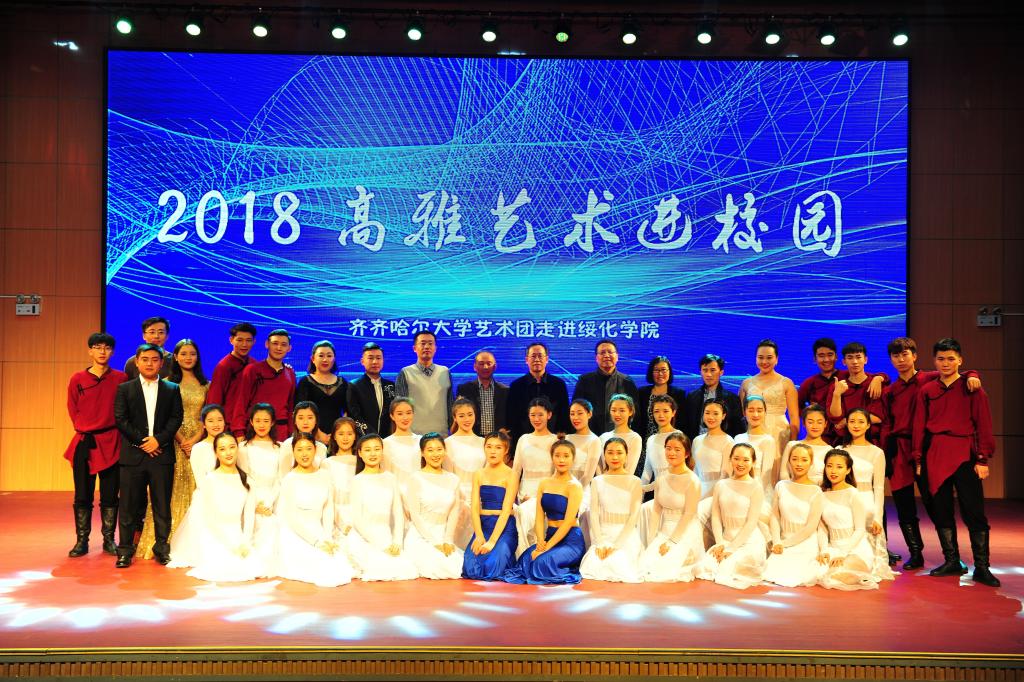 金秋十月北疆行,薈萃經(jīng)典送真情。為加強(qiáng)美育,傳承和弘揚(yáng)校園高雅藝術(shù),培養(yǎng)學(xué)生良好的審美情趣和藝術(shù)素養(yǎng),10月21—25日,受黑龍江省教育廳、文化廳、財(cái)政廳的指派,校黨委宣傳統(tǒng)戰(zhàn)部副部長何強(qiáng),帶領(lǐng)齊齊哈爾大學(xué)藝術(shù)團(tuán)40余名師生,先后赴七臺(tái)河職業(yè)學(xué)院、綏化學(xué)院、東北農(nóng)業(yè)大學(xué)、哈爾濱體育學(xué)院、哈爾濱城市職業(yè)學(xué)院開展了五場“高雅藝術(shù)進(jìn)校園”專場演出。