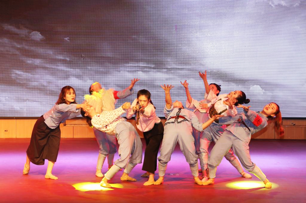 《八女投江》是發(fā)生在抗戰(zhàn)時(shí)期的一個(gè)悲壯的故事。以冷云為首的東北抗日聯(lián)軍8名女戰(zhàn)士,為掩護(hù)主力突圍,彈盡援絕,最后毅然決然地投入冰冷的烏斯渾河中……楊煒悅、趙萌等同學(xué)帶來的當(dāng)代舞《八女投江》用堅(jiān)毅的眼神、有力的動(dòng)作讓現(xiàn)場師生共同感受了女戰(zhàn)士們勇敢無畏、為國殉難的愛國情懷。
