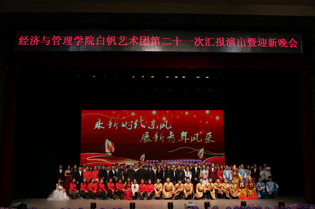 1998年10月,經(jīng)濟(jì)與管理學(xué)院白帆藝術(shù)團(tuán)成功舉辦了辦團(tuán)以來的第一次文藝匯演,至今已成功舉辦了21次專場匯報演出。作為學(xué)生群眾性社團(tuán)組織,白帆藝術(shù)團(tuán)自成立之日起就以“服務(wù)青年學(xué)生成長成才”為辦團(tuán)初心,以打造“高雅文化”為辦團(tuán)宗旨,力求推出精品力作,有序?qū)崿F(xiàn)文化育人。近年來,白帆藝術(shù)團(tuán)全體成員堅持“不忘辦團(tuán)初心、青春攜手奮進(jìn)”的辦團(tuán)理念,積極活躍在校、院兩級的文化舞臺上。低俗不等于通俗、通俗不等于高雅,單純感官上的娛樂不等于精神上的真正快樂。近年來,經(jīng)濟(jì)與管理學(xué)院白帆藝術(shù)團(tuán)深入貫徹全國全省高校思想政治工作會議精神,堅持“以文化人、以文育人”,將滿足青年學(xué)生群體的崇高精神文化需求作為作品創(chuàng)作的出發(fā)點,堅持以“高雅文化”引領(lǐng)青年學(xué)生成長成才,將中華優(yōu)秀傳統(tǒng)文化、革命文化、社會主義先進(jìn)文化等元素融入節(jié)目創(chuàng)作,充分發(fā)揮了高雅文化的育人功能,在服務(wù)青年學(xué)生成長成才方面做出了重要貢獻(xiàn)。