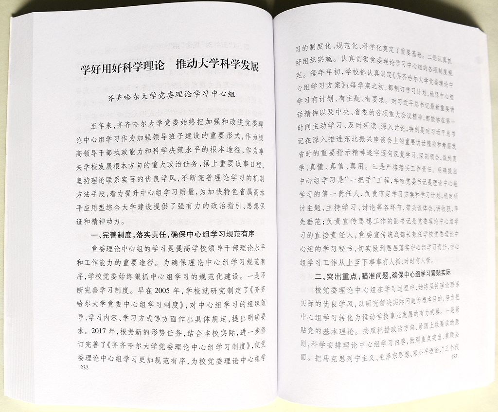 近日,我校黨委理論學(xué)習(xí)中心組學(xué)習(xí)經(jīng)驗(yàn)材料《學(xué)好用好科學(xué)理論推動(dòng)大學(xué)科學(xué)發(fā)展》,入選中共黑龍江省委宣傳部遴選匯編出的《用習(xí)近平新時(shí)代中國(guó)特色社會(huì)主義思想武裝頭腦——全省黨委(黨組)理論學(xué)習(xí)中心組學(xué)習(xí)貫徹習(xí)近平新時(shí)代中國(guó)特色社會(huì)主義思想和黨的十九大精神經(jīng)驗(yàn)匯編》。