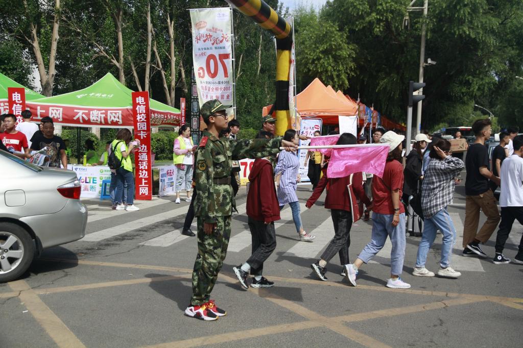 新生的到來為學(xué)校帶來新鮮血液的同時(shí),也加劇了校園周邊的交通壓力。為了確保新生報(bào)到期間校內(nèi)外道路暢通、文明出行,學(xué)校武裝部(保衛(wèi)處)組織國旗護(hù)衛(wèi)隊(duì)的同學(xué)們走上街頭為新生及家長提供義務(wù)引導(dǎo)服務(wù)、協(xié)助交警部門維護(hù)交通秩序,用實(shí)際行動(dòng)展現(xiàn)了齊大學(xué)子的風(fēng)采。