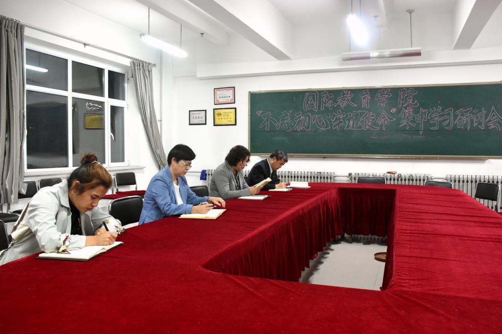 9月17日晚,國(guó)際教育學(xué)院領(lǐng)導(dǎo)班子在德潤(rùn)大廈219辦公室進(jìn)行了黨的政治建設(shè)專題集中學(xué)習(xí)研討。黨委書記孫海麗領(lǐng)學(xué)了習(xí)近平總書記關(guān)于黨的政治建設(shè)方面的相關(guān)論述,黨委書記孫海麗表示,“不忘初心、牢記使命”主題教育學(xué)習(xí)研討要同研究解決學(xué)院改革發(fā)展穩(wěn)定的突出問(wèn)題和黨的建設(shè)面臨的緊迫問(wèn)題相結(jié)合,同個(gè)人的思想實(shí)際和工作實(shí)際相結(jié)合,切實(shí)將改革落實(shí)到實(shí)處。學(xué)院新的領(lǐng)導(dǎo)班子應(yīng)在此次主題教育中提高理論學(xué)習(xí),改進(jìn)工作流程,加強(qiáng)政治建設(shè),按照學(xué)校的要求,堅(jiān)守初心、承擔(dān)使命、尋找差距、落實(shí)整改,切實(shí)提高服務(wù)師生的能力。