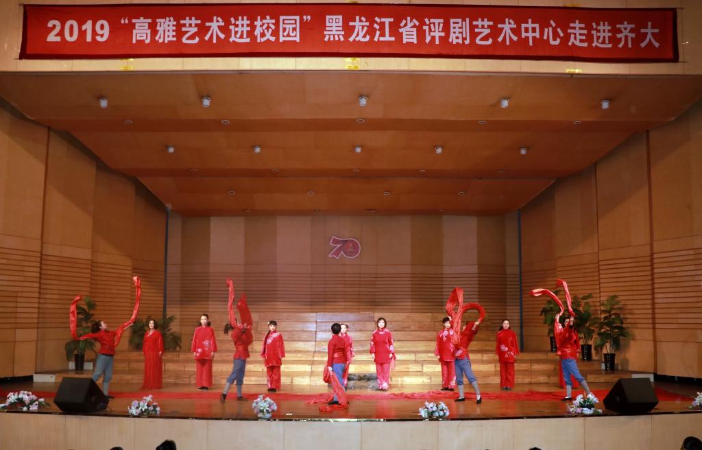 10月16日下午,2019年“高雅藝術進校園”黑龍江省評劇藝術中心走進齊大專場文藝演出在我校音樂廳舉行。省評劇藝術中心的40余名演職人員,用他們的精湛技藝為我校師生送來了一場高水平的國粹藝術盛宴。我校1000余名師生共同欣賞了演出。