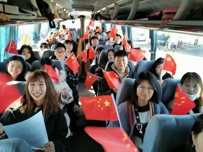 集中學(xué)習(xí)夯實理論底蘊。9月14日10:00,在齊齊哈爾開往鶴崗的大客車上,臨時黨支部組織師生黨員、入黨積極分子認(rèn)真學(xué)習(xí)習(xí)近平總書記重要講話精神。臨時黨支部書記陳曦澤、副書記李美虹、宣傳委員鄧重博分別領(lǐng)學(xué)了習(xí)近平總書記在慶祝中華人民共和國成立70周年大會上、在國家勛章和國家榮譽稱號頒授儀式上、在慶祝中華人民共和國成立70周年招待會上的3篇重要講話。