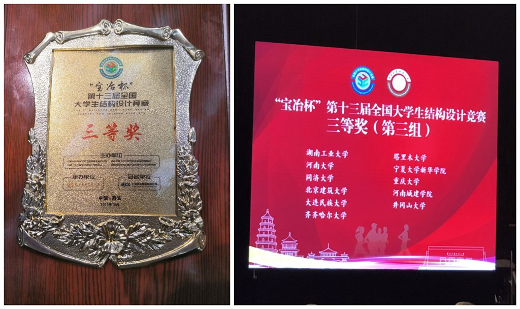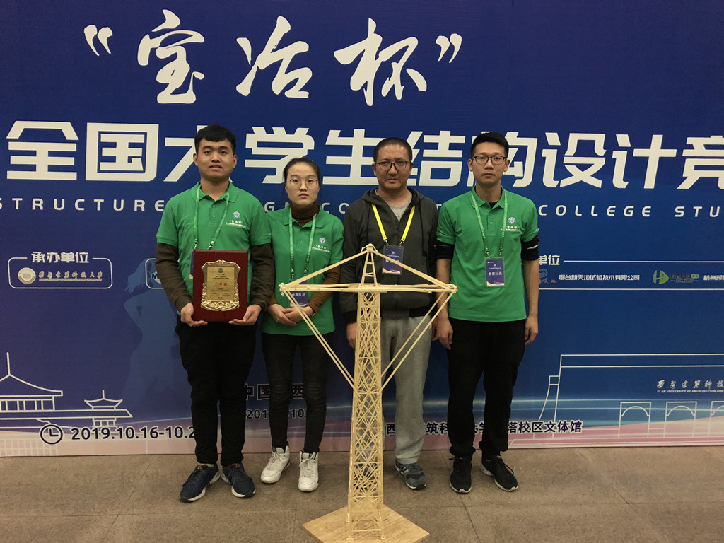 10月20日下午,歷時5天的2019年“寶冶杯”第十三屆全國大學(xué)生結(jié)構(gòu)設(shè)計競賽在西安建筑科技大學(xué)體育館圓滿落幕。來自110所高校的111支參賽隊圍繞“山地輸電塔模型設(shè)計與制作”進行現(xiàn)場比拼。由我校建筑與土木工程學(xué)院土木工程系2016級本科生趙麗娟、景云雷和2017級本科生王爽組成的齊齊哈爾大學(xué)代表隊在指導(dǎo)教師張宇、王麗的悉心指導(dǎo)下,經(jīng)過緊張激烈地角逐,榮獲全國三等獎,取得我校在此項賽事上的歷史性突破。