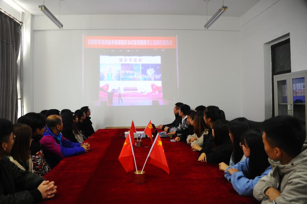 11月8日上午,由省委教育工委、省教育廳協(xié)辦,黑龍江大學(xué)承辦的首都教育系統(tǒng)服務(wù)保障國慶活動(dòng)宣講團(tuán)黑龍江省高校報(bào)告會(huì)在黑龍江大學(xué)舉行,為進(jìn)一步激發(fā)愛國熱情,在“不忘初心、牢記使命”主題教育中,加強(qiáng)愛國主義教育,弘揚(yáng)愛國主義精神,11月7日,校黨委宣傳部向各二級黨委、直屬黨支部發(fā)出了《關(guān)于組織收看首都教育系統(tǒng)服務(wù)保障國慶活動(dòng)宣講團(tuán)黑龍江省高校報(bào)告會(huì)網(wǎng)絡(luò)直播的通知 》,我校師生積極響應(yīng),通過電視、網(wǎng)絡(luò)、手機(jī)客戶端等多種形式同步收看了報(bào)告會(huì)網(wǎng)絡(luò)直播。