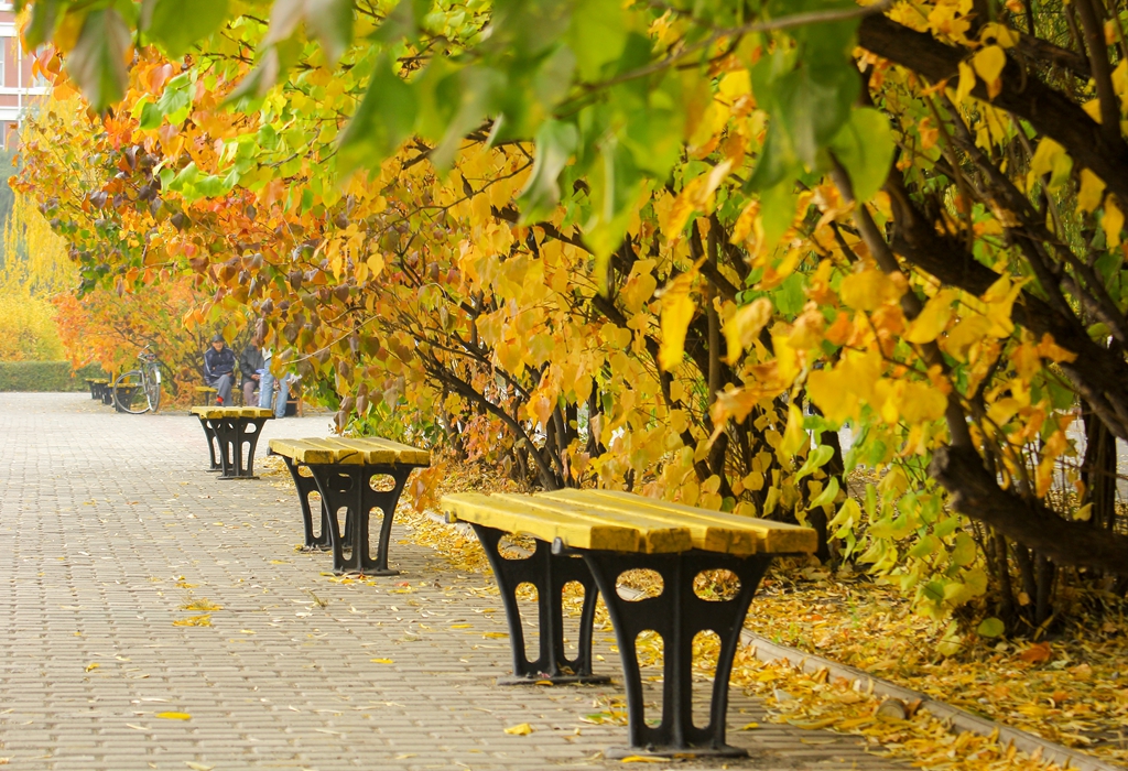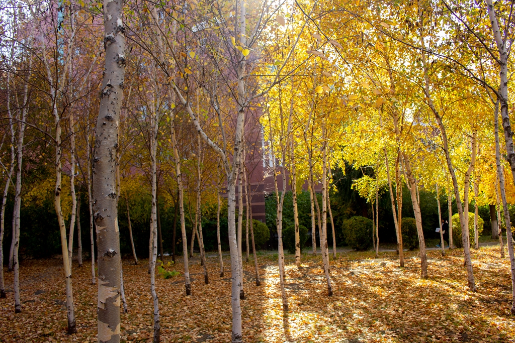 我推開宿舍樓寢室的窗,看到的是樹葉上映照的第一縷陽光,那抹亮色,一下子就喚醒了我沉睡中的心靈。