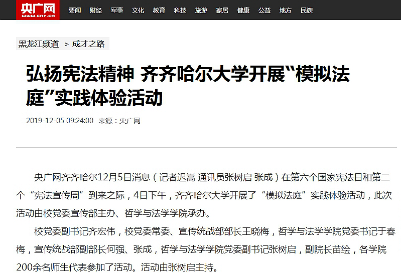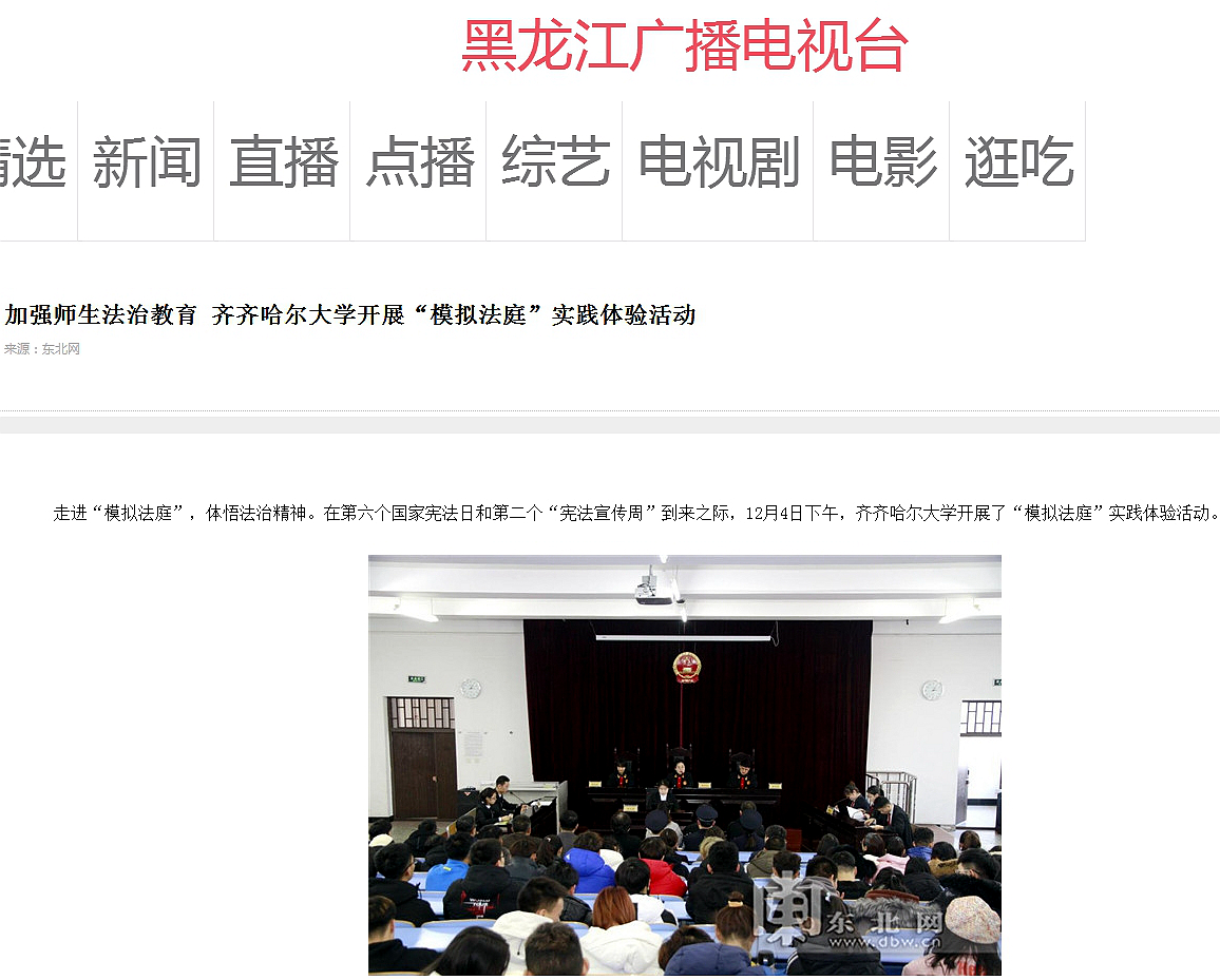 2.黑龍江廣播電視臺:加強師生法治教育齊齊哈爾大學開展“模擬法庭”實踐體驗活動