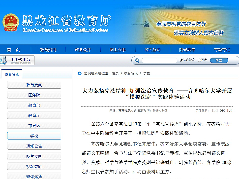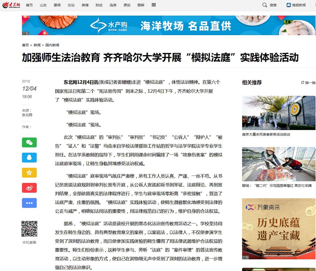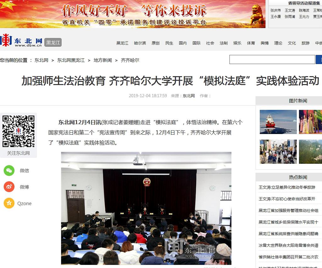 1.東北網(wǎng):加強師生法治教育齊齊哈爾大學開展“模擬法庭”實踐體驗活動