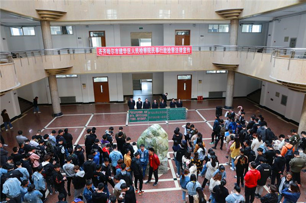 4月24日下午,學(xué)生工作部(學(xué)生處)邀請(qǐng)齊齊哈爾市建華區(qū)人民檢察院的檢察官,在西區(qū)主樓陽(yáng)光大廳開(kāi)展“送法進(jìn)校園”活動(dòng),全方位進(jìn)行民事行政法治宣傳。廣大師生對(duì)“校園貸”“套路貸”等行為涉及的民事法律問(wèn)題有了進(jìn)一步的了解,增強(qiáng)了法治觀念和依法維護(hù)合法權(quán)益的自覺(jué)性。