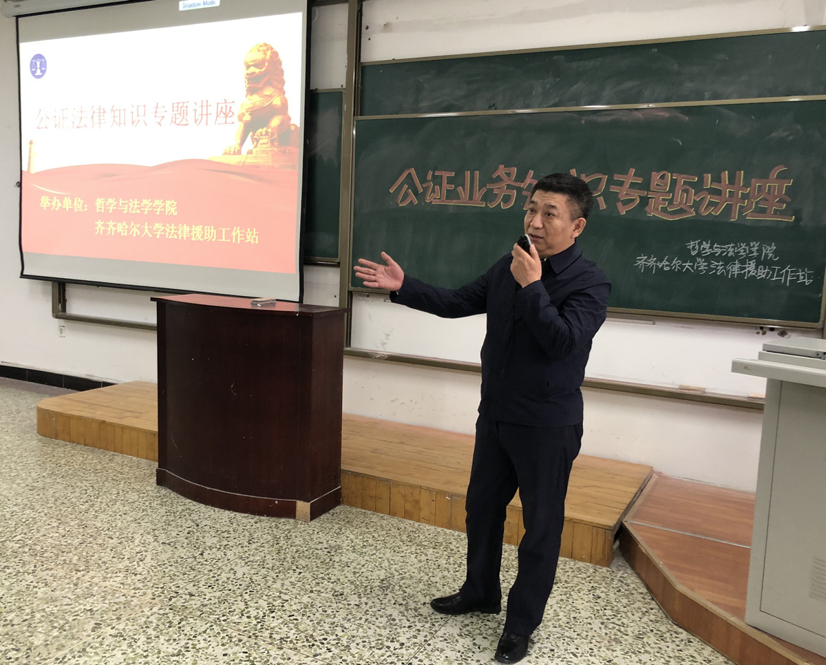 10月28日,學(xué)院邀請(qǐng)齊齊哈爾市公證處主任萬(wàn)軍海在25教J202室舉辦了“公證法律知識(shí)”專題講座。通過(guò)萬(wàn)海軍主任的精彩講解進(jìn)一步加深了同學(xué)們對(duì)公證法律知識(shí)的認(rèn)識(shí)。