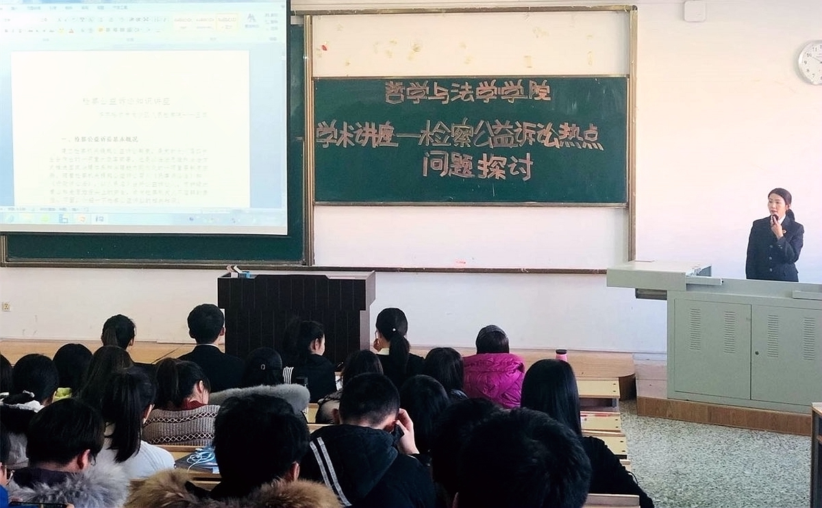 11月27日,學(xué)院邀請(qǐng)齊齊哈爾市龍沙區(qū)人民檢察院公益訴訟檢察部主任王麗做了題為“檢察公益訴訟熱點(diǎn)問(wèn)題探討”的學(xué)術(shù)講座,使師生們加深了對(duì)公益訴訟制度的認(rèn)識(shí)和了解,認(rèn)識(shí)到公益訴訟對(duì)于維護(hù)國(guó)家和社會(huì)公共利益、規(guī)范行政行為、推進(jìn)依法行政的重要意義。