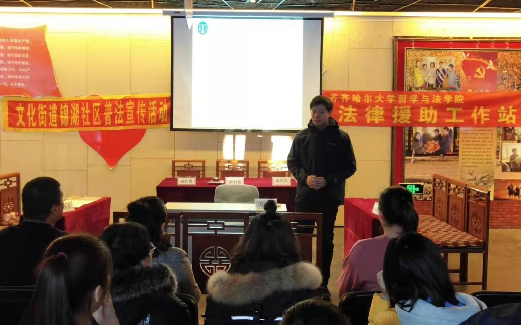 11月20日,學(xué)院“模擬法庭”走進(jìn)錦湖社區(qū),為社區(qū)群眾展示了一堂生動(dòng)的普法宣傳教育課?!澳M法庭”成員全部由學(xué)院法律援助工作站學(xué)生組成,開(kāi)啟了學(xué)生服務(wù)社會(huì)普法宣傳教育的新篇章。
