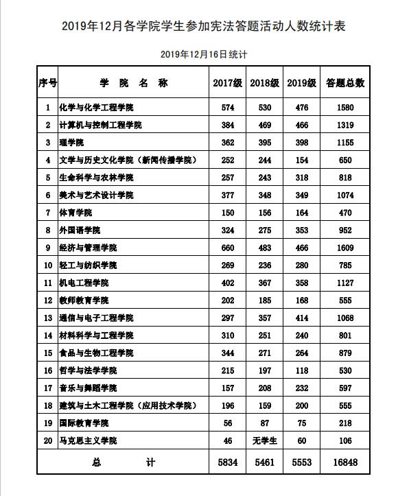 為深入推進(jìn)“七五”普法工作,弘揚(yáng)憲法精神,根據(jù)黑龍江省教育廳《關(guān)于組織在校大學(xué)生參與憲法答題活動(dòng)的通知》要求,在第六個(gè)國(guó)家憲法日和第二個(gè)“憲法宣傳周”期間,我校組織學(xué)生參加了教育部“普法網(wǎng)”憲法答題活動(dòng)。學(xué)校普法工作領(lǐng)導(dǎo)小組和各學(xué)院黨委高度重視,站在全面依法治國(guó)的政治高度,切實(shí)加強(qiáng)統(tǒng)籌領(lǐng)導(dǎo)。各學(xué)院黨委安排專人負(fù)責(zé)憲法答題活動(dòng),廣泛動(dòng)員學(xué)生積極參加答題活動(dòng),參加答題學(xué)生數(shù)占應(yīng)答題學(xué)生總數(shù)的91.37%,圓滿完成了答題工作。
