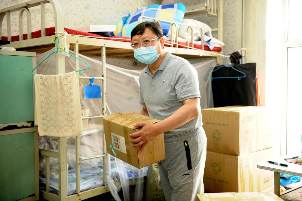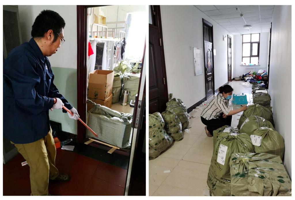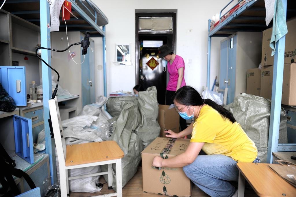 理學院王永潔、張敬兩位老師雖然年齡比較大,但面對繁重瑣碎的整理打包工作,她們卻毫不退縮。雖然對于視頻連線操作不熟悉,但在財務處黨員志愿者王瑩彬老師的幫助下,她們憑借著多年工作中培養(yǎng)的默契,及時順利地完成了學院布置的全部任務。大家勸她們要注意休息,可王永潔老師卻總是說“這就像給自己的孩子收拾東西,累不著!”
