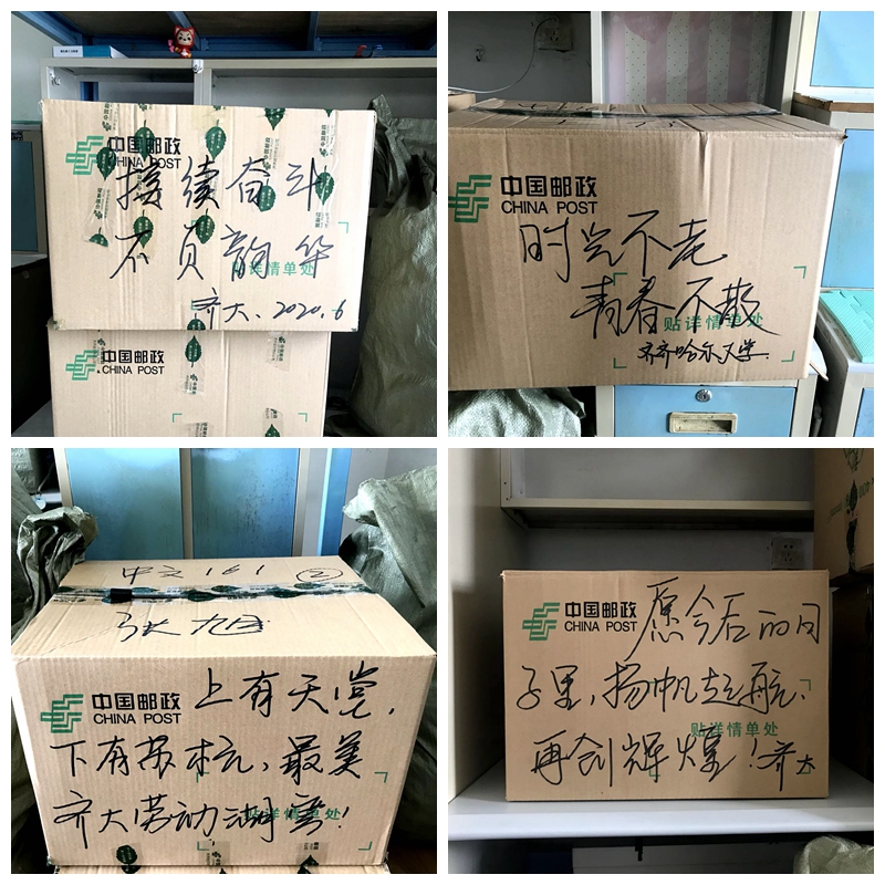 一場歷時數年的陪伴與成長,從初秋到盛夏,從遇見到離別,尚未敘盡重逢的思念,離別卻猝不及防的到來。對于整天和同學們在一起的輔導員老師,今年的畢業(yè)季注定與眾不同,承載著太多的不舍與留戀。文學與歷史文化學院學工辦主任宋菲菲老師在為畢業(yè)班同學打包行李物品時,看到同學們大一軍訓時的青澀合影,或是墻上掛著的各種晚會照片時常常淚目。在為同學們標注郵寄地址時,她把自己的美好祝福與期許也寫在了行李箱上?!敖永m(xù)奮斗、不負韶華!”“揚帆起航、再創(chuàng)輝煌!”......