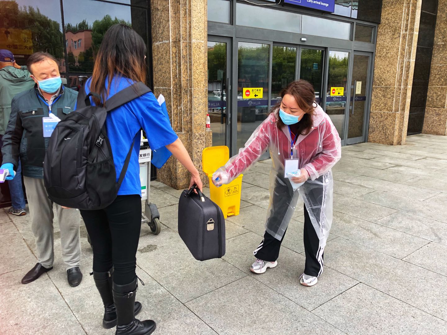 “歡迎回家!”“箱子沉,我來幫你拿?!痹邶R齊哈爾民用機場,剛下飛機的返校學生還沒有感受到秋雨的寒涼,就穿上了機關黨員服務隊老師們送來的雨衣,收到了學校為返校學生精心準備的愛心早餐包和醫(yī)療健康包,感受到了學校對返校學生身心健康的關心重視與濃情關懷。