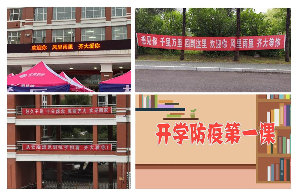 學(xué)校積極營造暖心的入校報(bào)到氛圍。電子屏上循環(huán)顯示的“歡迎回家”“想見你千里萬里回到這里”;“歡迎你風(fēng)里雨里齊大愛你”“從云端相見到執(zhí)手相看,齊大愛你!”“好久不見十分想念美麗齊大歡迎回家”等標(biāo)語讓同學(xué)們倍感溫暖。