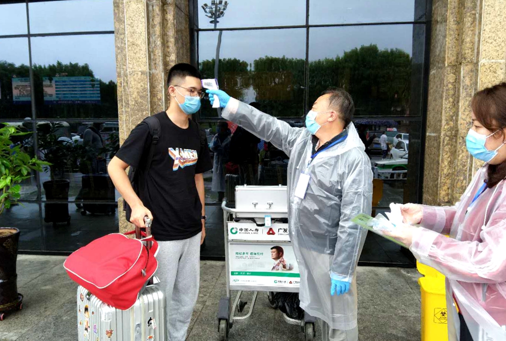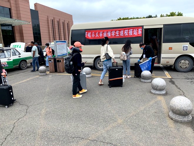 沖鋒在前,當好“服務員”。“歡迎回家!”“箱子沉,我來幫你拿?!痹邶R齊哈爾民用機場,剛下飛機的返校學生還沒有感受到秋雨的寒涼,就感受到了學校對返校學生身心健康的關心重視與濃情關懷。為做好機場接機工作,機關黨委對齊市機場返校的學生到站時間、航班班次和本人聯(lián)系方式等,與各學院進行了進一步核對,做到精準服務,確保不漏接一個學生。在機場,黨員干部志愿者和校醫(yī)一起為學生測量體溫、進行消毒、更換口罩,核對學生身份信息和完美校園掃碼信息,保證學生安全返回學校。
