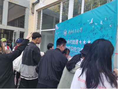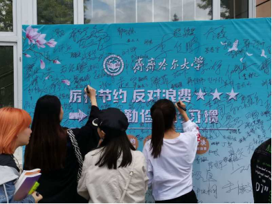本次活動得到了廣大師生的熱情參與和大力支持,到場的老師、同學(xué)們紛紛在簽名板上簽下名字,許下承諾,決心從我做起,從身邊做起,堅決制止餐飲浪費行為,爭做“反對浪費、厲行節(jié)約”的踐行者、宣傳者和維護(hù)者。
