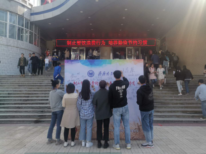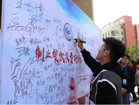 為深入貫徹落實習(xí)近平總書記關(guān)于堅決制止餐飲浪費行為、切實培養(yǎng)節(jié)約習(xí)慣的重要批示精神,進(jìn)一步加強宣傳教育、切實培養(yǎng)節(jié)約習(xí)慣,在全校營造浪費可恥、節(jié)約為榮的氛圍,9月18日中午,學(xué)校團(tuán)委在東、中、西三區(qū)食堂門前舉行了“制止餐飲浪費行為、培養(yǎng)勤儉節(jié)約習(xí)慣”師生簽名活動。