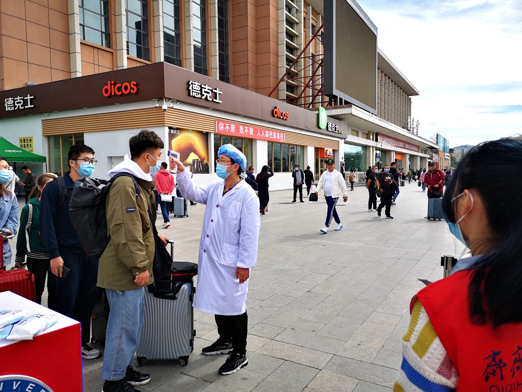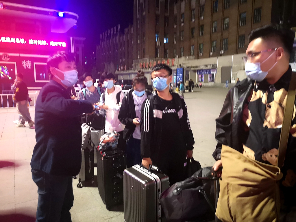 暴風(fēng)雨過后的齊齊哈爾較往年同期溫度要低很多,機電工程學(xué)院輔導(dǎo)員張國梁早上6:30就跟隨校車去火車站迎接返校同學(xué),他需要負責(zé)指導(dǎo)學(xué)生掃碼、測溫,幫助學(xué)生拿行李上車,安排學(xué)生有序乘坐校車返校。他說:“天氣雖冷,但是看見學(xué)生回來的那一刻心里是火熱的,我會盡最大努力幫助學(xué)生,讓同學(xué)們感受到回家的溫暖。”