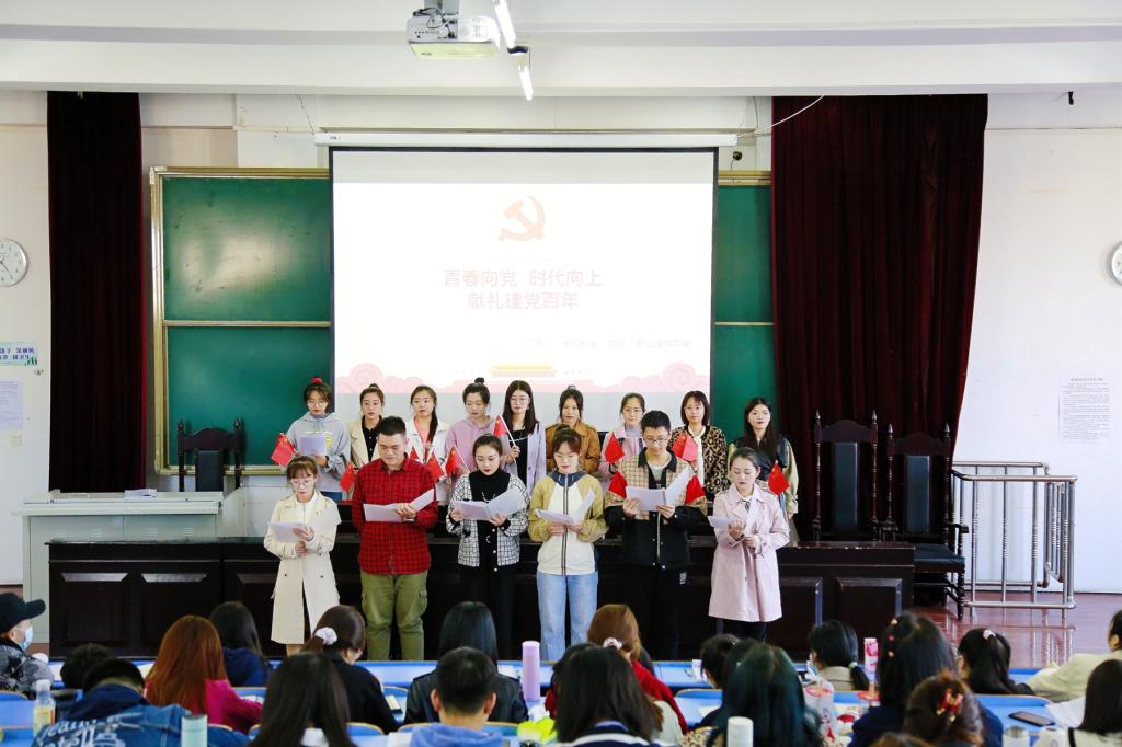 為了使黨史學(xué)習(xí)教育更好地融入思政課,馬克思主義學(xué)院積極探索有效載體與可行模式,在已開設(shè)的思政課中,教師結(jié)合專業(yè)、結(jié)合課堂實(shí)際組織學(xué)生以個(gè)體通讀、群體朗讀、集體誦讀的方式圍繞謳歌建黨百年這一主題進(jìn)行課堂融入,采取課前5分鐘講黨史、課上經(jīng)典誦讀詠黨史、課后學(xué)生分享傳黨史的方式在全校思政課堂扎實(shí)開展黨史學(xué)習(xí)教育。