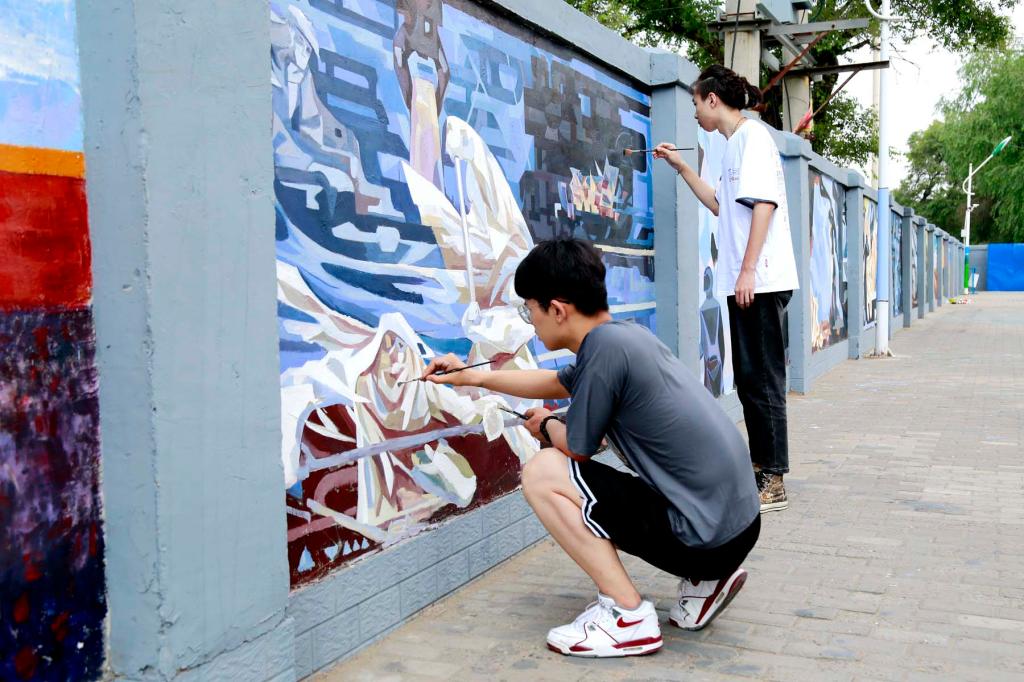 百米黨史彩繪墻是由美術(shù)與藝術(shù)設(shè)計(jì)學(xué)院120余名師生創(chuàng)作完成的。在進(jìn)場創(chuàng)作前,學(xué)院黨委帶領(lǐng)專業(yè)師生進(jìn)行了一個(gè)多月的設(shè)計(jì)研討,6月21日開始進(jìn)場創(chuàng)作,百余名師生頂著炎炎烈日連續(xù)工作三天,終于將這濃縮了黨百年奮進(jìn)歷程的靚麗彩繪呈現(xiàn)在了大家面前。