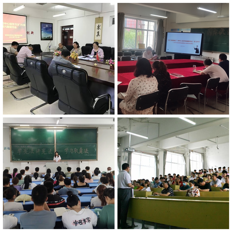 哲學(xué)與法學(xué)學(xué)院、馬克思主義學(xué)院、文學(xué)與歷史文化學(xué)院(新聞傳播學(xué)院)、材料科學(xué)與工程學(xué)院、機(jī)電工程學(xué)院、建筑與土木工程學(xué)院、國際教育學(xué)院、經(jīng)濟(jì)與管理學(xué)院、輕工與紡織學(xué)院、化學(xué)與化學(xué)工程學(xué)院、通信與電子工程學(xué)院、食品與生物工程學(xué)院等迅速行動(dòng),以習(xí)近平法治思想為指導(dǎo),通過結(jié)合黨史學(xué)習(xí)教育、大學(xué)生“學(xué)憲法講憲法”、教師培訓(xùn)、理論宣講等活動(dòng),面向師生深入開展了不同形式的系列學(xué)習(xí)宣傳活動(dòng)。
