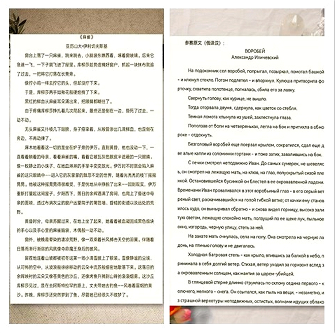此次比賽下設(shè)俄譯漢與漢譯俄二個(gè)組別,譯者基本來自國內(nèi)外知名高校,本科生、碩士研究生、博士研究生以及廣大俄語工作者同臺(tái)競(jìng)擂,高手云集。大賽組委會(huì)共收到俄譯漢參賽作品202份,最終一等獎(jiǎng)、二等獎(jiǎng)全部被博士研究生、碩士研究生包攬,三等獎(jiǎng)獲獎(jiǎng)?wù)咧杏?名本科生脫穎而出,分別來自齊齊哈爾大學(xué)及哈爾濱理工大學(xué)。