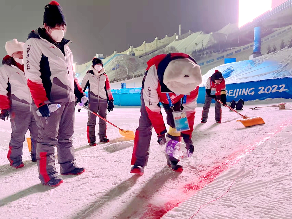 為確保賽事的順利進(jìn)行,裁判員需要每天早上5點(diǎn)天沒亮就出發(fā)到賽場進(jìn)行場地清除浮雪、場地平整、旗門設(shè)計(jì)、場地劃線、終點(diǎn)線繪制、終點(diǎn)混合區(qū)設(shè)置等工作。障礙追逐國內(nèi)裁判團(tuán)隊(duì)還成立了臨時(shí)黨支部,充分發(fā)揮黨員的先鋒模范作用和黨組織的戰(zhàn)斗堡壘作用,為高質(zhì)量完成賽事工作保駕護(hù)航。每一位裁判員在堅(jiān)守各自崗位,出色完成執(zhí)裁任務(wù)的同時(shí),都會(huì)幫助其他崗位完成工作,在大家眼里工作不分組別,參加冬奧會(huì)就是貢獻(xiàn)力量,就是要向世界展示中國裁判員的執(zhí)裁技能、工作作風(fēng)和精神風(fēng)貌。