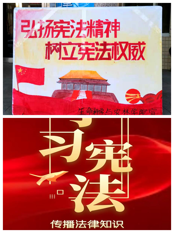 宣傳部在“三致廣場”播放憲法活動宣傳周視頻,各學(xué)院通過制作宣傳板報、宣傳標語營造宣傳氛圍。