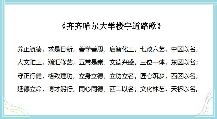 頌長歌以憶往 展宏圖于遠(yuǎn)方 ——齊齊哈爾大學(xué)校園建筑物及公共區(qū)域命名(釋義)工作側(cè)記
