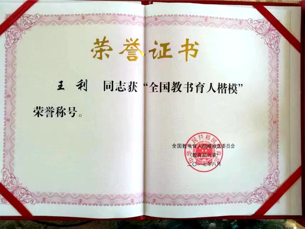 在平凡的教學(xué)道路上,王利沒有忘記教書育人的初心,任勞任怨,追求卓越,努力讓自己在平凡的崗位上發(fā)出不平凡的回響。作為一名學(xué)科帶頭人,為了上好每一節(jié)課,他不斷鉆研教材,不斷探索教法,寓教于樂,融情于理,培養(yǎng)學(xué)生的創(chuàng)新思維和創(chuàng)新精神。二十多年來,他嚴(yán)謹(jǐn)治學(xué),潛心鉆研,投身課程改革,注重實踐,善于反思,多次獲國家、省、市、縣優(yōu)質(zhì)課、公開課、科研成果一等獎。積極主持、參與國家、省、市、縣科研課題近20項。出版著作《思想政治教育與傳統(tǒng)文化》,多篇論文在國家級刊物上公開發(fā)表。