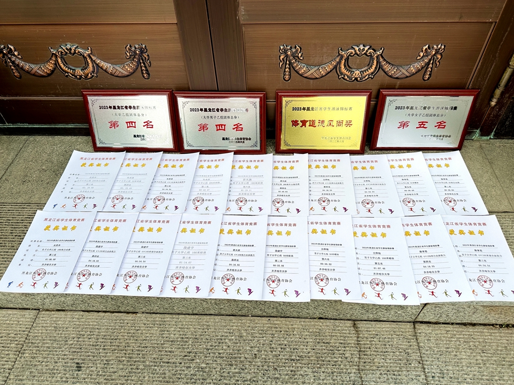 6月10-11日,2023年黑龍江省學(xué)生游泳錦標(biāo)賽暨第一屆全國學(xué)生(青年)運動會黑龍江省學(xué)生游泳項目選拔賽在東北林業(yè)大學(xué)舉行。經(jīng)過兩天的激烈角逐,我校游泳隊團(tuán)體總分榮獲大學(xué)乙組團(tuán)體第四名,并獲得大學(xué)男子乙組團(tuán)體總分第四名,大學(xué)女子乙組團(tuán)體總分第五名,男子乙組4x100米混合接力第三名,4x100米自由泳接力第四名的好成績。參賽隊員段建宇獲得50米蛙泳第二名并達(dá)到一級運動員標(biāo)準(zhǔn),并獲得100米蛙泳第三名;陳常思獲得50米自由泳第二名,50米蝶泳第五名;朱承熹獲得200米仰第二名,50米仰泳第四名;曾天放獲得100米蛙泳第六名,200米混合第四名;王澤旭獲得100米蝶泳第五名,50米蝶泳第六名。