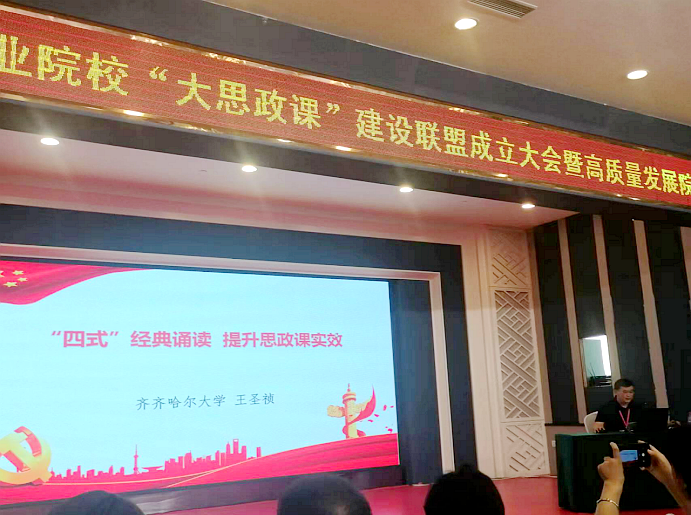 在會議期間,王圣禎以““四式”經(jīng)典誦讀 提升思政課實效”為題介紹了我校長期堅持的思政課經(jīng)典誦讀教學(xué)模式。