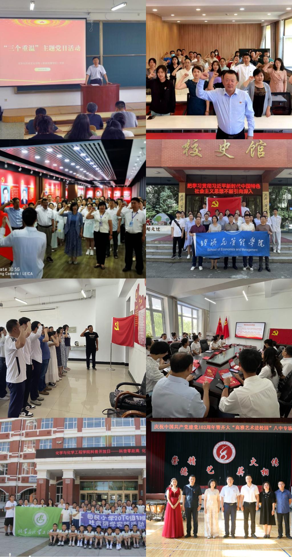為慶祝中國共產(chǎn)黨成立102周年,深入開展學(xué)習(xí)貫徹習(xí)近平新時代中國特色社會主義思想主題教育,全面貫徹落實(shí)黨的二十大精神,“七一”前后,學(xué)校精心組織開展了內(nèi)容豐富、形式多元的主題活動,大力弘揚(yáng)偉大建黨精神,引導(dǎo)廣大黨員干部進(jìn)一步筑牢信仰之基、補(bǔ)足精神之鈣、把穩(wěn)思想之舵,把主題教育成效轉(zhuǎn)化為推動學(xué)校工作高質(zhì)量發(fā)展的強(qiáng)大合力。