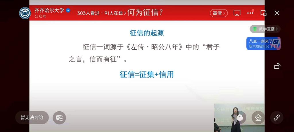活動中,中國人民銀行齊齊哈爾市分行征信工作人員現(xiàn)場為我校學生作了題為“信青春 守未來”的征信知識講座,主講人以《征信業(yè)管理條例》頒布十年來我國征信體系建設取得的成效開題,從“信用、征信的概念解讀”“信用消費的場景”“征信的應用領域”“大學生如何養(yǎng)成良好的信用習慣”等四方面入手,引導同學們強化個人信息保護意識,樹立正確的消費觀和價值觀,合理合法地維護自身權益。學校通過微信公眾號對活動進行了線上直播,省內兄弟院校線上參加了活動。